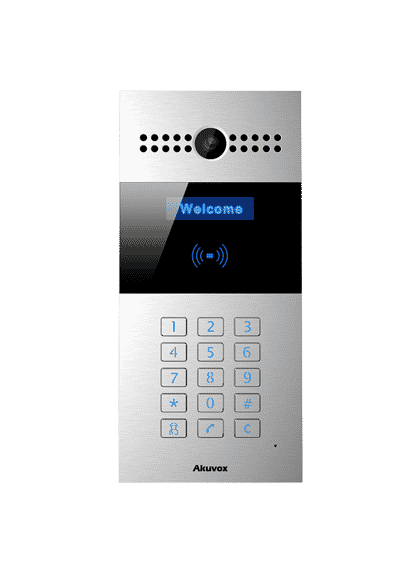 TheAkuvox R27A IP Video Intercom is a stylish SIP-enabled IP video door phone with an RF card reader and a numeric keypad. It allows for easy monitoring of an entrance area as well as convenient entry control.