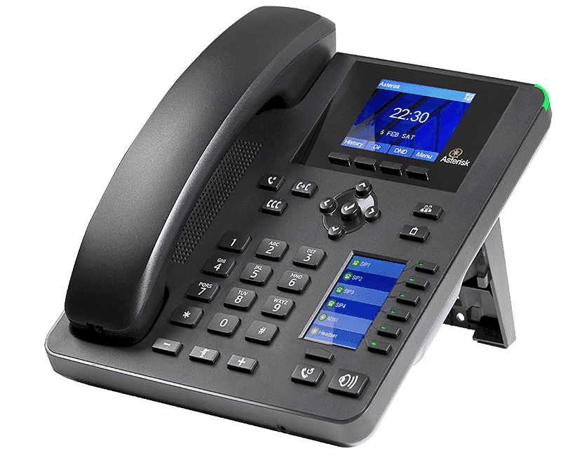 - LCD display with a 2.4-inch backlit color BLF screen.