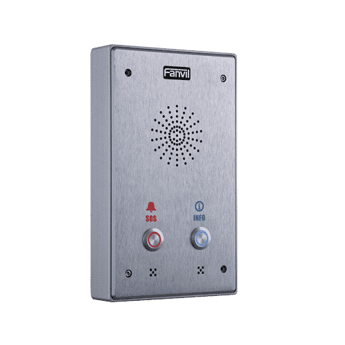 The Fanvil i12 features advanced technology such as ambient noise reduction and rich, wideband audio via the 2W speaker to deliver a superior entry phone experience. Due to dual Ethernet connections and PoE capabilities, it smoothly interacts with your network. Anti-stamp nets and an anti-tamper switch are included in Fanvil’s vandal defense. The Fanvil i12 has a remarkable operating temperature range, extending from -40°F to 158°F. The Fanvil i12 is a SIP intercom that features a Broadcom chipset and durable aluminum housing.