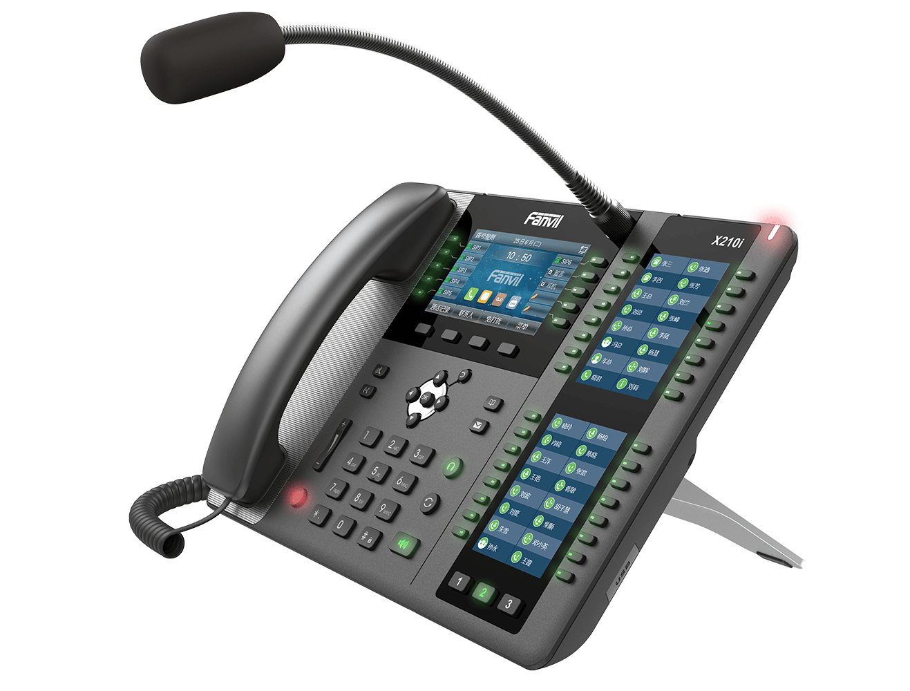 The Fanvil X210i Paging Console Phone is a visualization paging console phone designed for industrial customers. It has a gooseneck microphone and supports HD hands-free calling. Set up a one-click call function with intelligent programmable DSS buttons to improve communication efficiency. It is SIP-compliant and can be used as a monitoring center or host for office managers, with functions such as making calls for external and internal phones, two-way intercom, monitoring, and broadcasting. The X210i enhances management efficiency as well as emergency response capabilities.