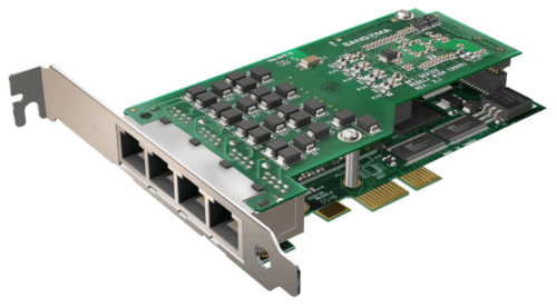 The A104 is part of Sangoma’s award-winning Advanced Flexible Telecommunications product line, and it uses the same high-performance PCI or PCI Express interface found in critical systems around the world. As soon as hardware and software advancements become available, take advantage of them. The A104, like all of Sangoma’s AFT family boards, may be field upgraded with crash-proof firmware. To obtain carrier-grade Echo Cancellation and Voice Quality Enhancement services for your telephone systems, choose the Sangoma A104D and A104DE, which are packed with world-class DSP technology.