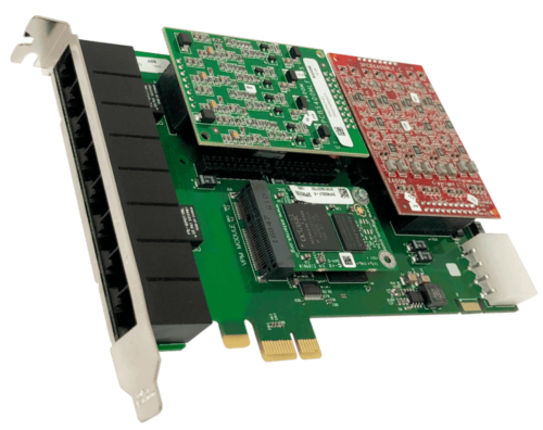 The Sangoma A8 series analog telephony card has one (1) to eight (8) ports and works with Asterisk, FreePBX, and PBXact phone systems. A single PCI or PCI Express slot can support up to eight PSTN calls. Because the cards are modular, you can mix and match FXO and FXS interfaces to create the exact port configuration you need. The A8 series telephony card provides 1-8 analog ports through quad-channel interface modules or up to 4 analog ports through single-channel interface modules. Because of hardware echo cancellation options, compatibility with most commercial-grade servers and Linux operating systems, and a lifetime warranty, customers rely on Sangoma to deliver value-based telephony solutions.